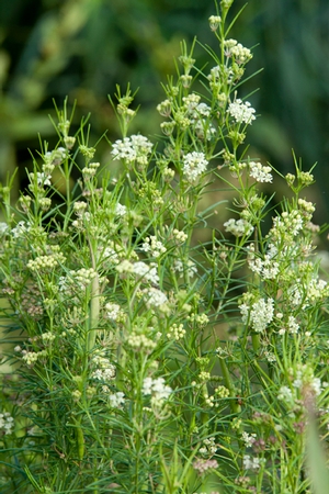 Asclepias verticillata is a widely adaptable and tough native perennial with fragrant white flowers that bloom later in the summer, notably later than many other Asclepias species. Its smooth, narrow, needle-like whorled foliage superficially resembles field horsetail (Equisetum arvense).