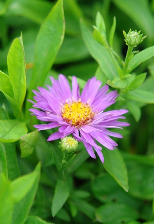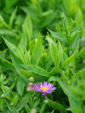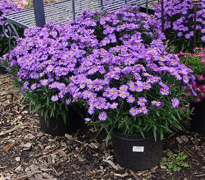 Aster 'Wood's Purple' has perfectly clean foliage, and is loaded with single, clear purple flowers in late summer and early fall. It is slightly earlier than 'Wood's Blue'. Bred for compact habit, long bloom period and heavy flowering, all of the Wood's Asters are outstanding pot crops and should be used far more often as a sturdy perennial alternative for mums.