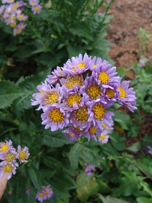 Aster tataricus ‘Jindai’ has large leaves (to 2') emerge in the spring and provide a bold backdrop for earlier blooming perennials. In the fall, numerous flower stalks rise to 4 or 5 feet and each is covered with 1" sky blue daisy-like flowers. Flowering is later than many other asters and this species often provides brilliant color until frost. This cultivar is shorter than the species and less likely to require staking.