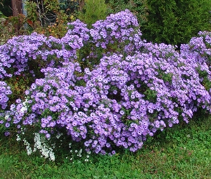 Medium blue, fine textured single ray flowers in September and October, aromatic foliage. Irresistable, a really tremendous plant. Introduced by Holbrook Farm.