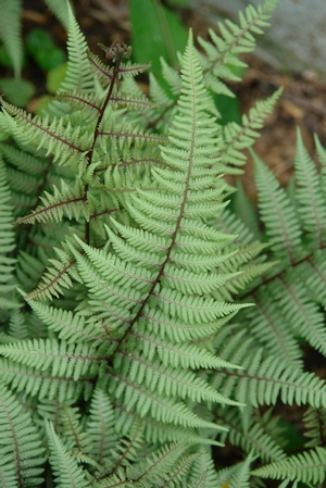This cross between A. filix-femina and A. niponicum can be grown in humus-rich woodlands and shady borders in acidic to neutral, moist, well-drained soils. Spreads by shallow rhizomes. Propagate by division in spring. Best used as a groundcover in the woodland or rock garden or as an edge or border in the shaded garden.
