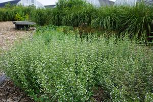 "I hadn't been as impressed in quite a while as I was when I first met this plant in Dale Hendricks' Pennsylvania garden. The bushy mound of light green, deer-resistant, fragrant foliage, reeking of peppermint, was smothered in clouds of tiny, very light blue flowers. Our plants here in hot and muggy NC have performed equally as well, in full flower from June until October. Calamintha nepeta needs good drainage and plenty of air circulation, although this one has survived far better than other calaminthas for us. I think rock gardeners and herb lovers alike will fall in love with this gem...for me, it was love at first sight!"- Plant Delights