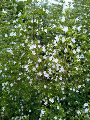 "Any perennial with the staying power of calamint and its airy beauty deserves accolades from more than the bees. From sunrise to sunset, from June through frost, the airy racemes of tiny, white-lipped flowers attract a motley crew of nectar seekers. Standing knee-high, the small, bushy beauty is delicate but wiry, standing up to any kind of weather, soldiering through rain, overbearing sun, muggy air and clear fall days without a hint of disease or pest problems. It softens a border as well - better than its temperamental look-alike, baby's breath, and calamint is aromatic to boot. Planted with the setting sun behind it, calamint turns into a luminous star of the evening garden. Vice versa in the morning."- Diane Heilenman, Louisville Courier-Journal
