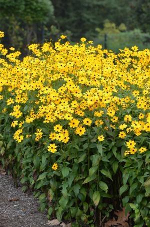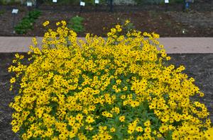 Vigorous mounds of foliage reach up to a sturdy 30” tall. Flower display lasts for a full 6 weeks. Bright and sunny for end of summer blooming that holds through the fall. C. palustris is native to the swampy forests of the south and particularly prolific in the Carolinas. It is one of the slower spreading Coreopsis and is a faculative that tolerates wet roots for extended periods. Mt. Cuba Center's 2015 Coreopsis Trial