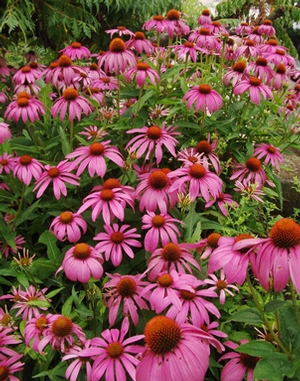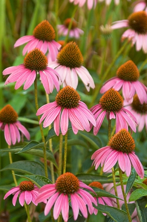 Echinacea take a wide array of conditions from average dry soil to medium, well-drained soil in part shade to full sun. Plant flowers best in full sun. Low-maintenance and tolerates drought, humidity, heat, poor soil. Resistant to pest and disease but sometimes suspectible to aster yellows disease. To encourage longer bloom time, flower heads can be deadheaded but not necessary. Seedheads are a delightful source of food for birds. To propagate, divide clump in the spring every 4 years. Root cuttings are also successful. Propagation by seed is easy if the birds don't eat it all first.