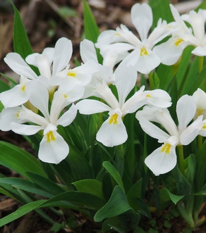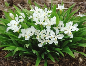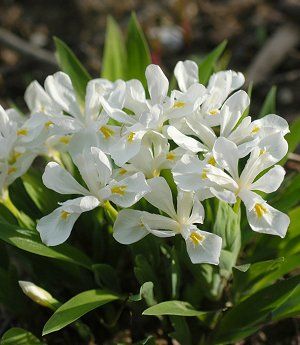 This delightful selection of our native crested iris came to us from Don Shadow in Winchester, TN. 'Tennessee White' is a vigorous spreader and prolific bloomer, covering the fan-like foliage with brilliant white flowers in spring, each accented with delicate yellow crests. Its late spring show starts earlier and lasts longer than the other selections we've tried.