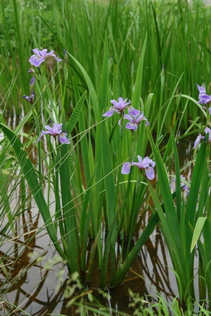 While the flower has some beetle and bird visitors, blueflag’s roots are a preferred carbohydrate source for aquatic rodents. It is a plant best grouped together en masse where the dotting of its blue flowers can create a rhythm as it peaks through the strong foliage. Over time, Iris versicolor spreads by rhizome or by seed if placed in a happy location.