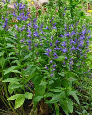 The spikes of brilliant true blue flowers on this wetland native attract butterflies, hummingbirds and neighbors to your garden! Lobelia siphilitica provides outstanding color for the border, wet meadow or pond edge. Naturalizes easily in moist soils, but tolerates periods of drought.