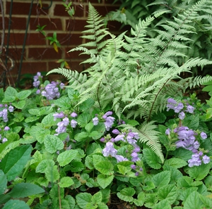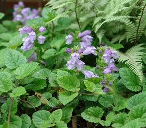 Creeping mint can be easily propagated by stem cutting. While it is stoloniferous and creeping, it is not aggressive like ground ivy, another cordate creeping plant. We enjoy using it as a groundcover and border edging plant in woodland or shade gardens. It grows very well under shrubs as a living mulch. An under-appreciated perennial in the landscape, it is recently growing in popularity.