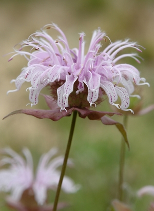 Tubular, two-lipped, pink to light lavender flowers carry a purple tracking and bloom from spring into summer. A member of the mint family, this native bee balm is very attractive to pollinators and occurs naturally in open and dry, rocky woods from Alabama to Texas, north to Iowa.