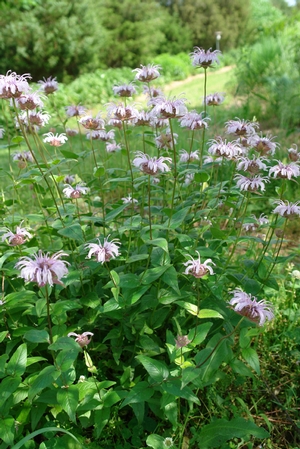 A ready member of an informal cottage garden or in a naturalized setting, beebalm provides a long season of bloom in the garden and even gives winter interest as the seedheads dry. Mammals avoid browsing Monarda due to its pungent aroma. Monarda spp. support a wide variety of butterflies, moths, long-tongued and short-tongued bees, skippers, and beeflies and are excellent additions to a wildlife garden.