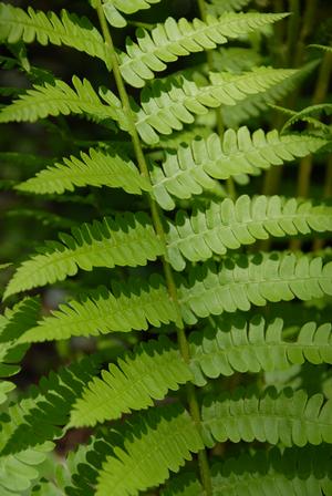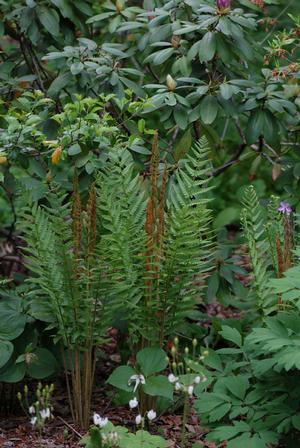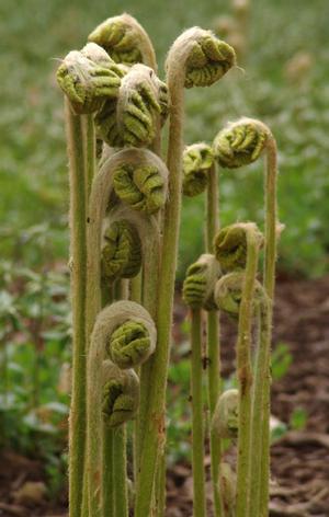 Brilliant green lacy fronds gracefully arch outward in stately vase-shaped clumps. In early summer narrow fronds emerge as vertical spikes of cinnamon red brown in the center. Especially striking when planted in groups. Prefers a moist shady site, but tolerates more sun in cooler zones.