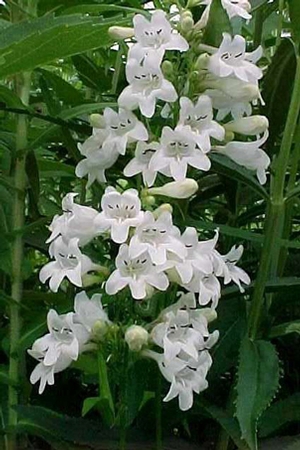 In early summer, white or light-pink-tinted, tubular 1" flowers on branching, hollow stalks rise above a basal rosette of lustrous dark green leaves. Drought tolerant, tough as nails, and deer resistant. The tubular flowers make an excellent landing pad for bees, butterflies and hummingbirds alike!