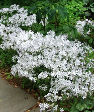P. divaricata prefers bright shade with organic, rich, moist, well-drained soils. These slowly spreading stemmed flowers can be found in rich woods and along stream banks. Give good air circulation to reduce growth of powdery mildew. Benefits from occasional fertilization. May be propagated by terminal shoot or root cuttings. Cut back after first bloom to promote second round of growth. Makes an excellent addition to the perennial, naturalized area or rock garden.