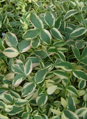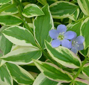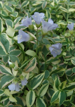 This excellent variegated selection of P. reptans was selected by Bill Cullina of The New England Wild Flower Society. A good plant for shade or a sunny edge (with adequate moisture). Imagine, a variegated Polemonium that actually lives! This native groundcover is very popular, and its royalties benefit the Garden in the Woods and their plant and habitat conservation.