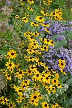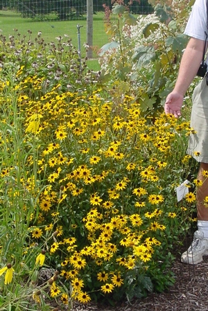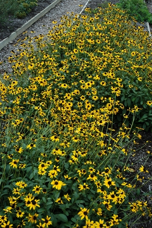 Shiny, deep green foliage. Smaller and finer than Rudbeckia 'Goldsturm' with 10 weeks of flowers from July into October. Six weeks after 'Goldsturm' is brown, this plant is at its peak! Excellent cut flower. Provides late summer nectar for butterflies and seeds in the winter for birds. Beautiful and versatile!