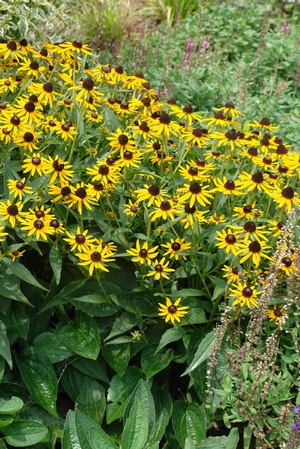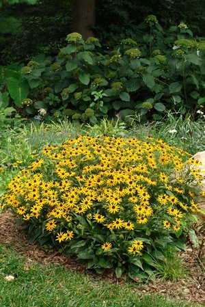 This knee-high performer is a knockout in the landscape! Selected for copious floral display and dwarf habit with increased manageability, this variety has excellent branching and forms a tidy, compact clump. A bit more floriferous than 'Goldsturm', flowers are held high above rich green foliage and bloom from July into October.
