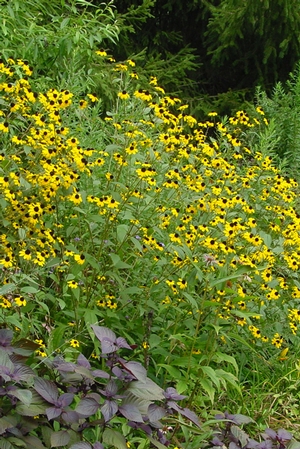 Rudbeckia triloba is in full bloom after Rudbeckia ‘Goldsturm’ begins to fade but before Rudbeckia fulgida var. fulgida comes into its full glory. It has earned its place in our mid-height meadow where plants must tolerate an early summer mow and biennial burns while being less than 3’ tall to maintain sight lines. Three-lobed coneflower supports a multitude of native bees including digger bees and carpenter bees as well as the specialist pollinator, Andrena rudbeckiae. The plant is self-pollinated but that doesn’t stop the wasps, butterflies, and flies from visiting. The foliage is also fed upon by a variety of native beetles, which while it doesn’t help the lower foliage, it does help support a full range of insects for their necessary habitat.
