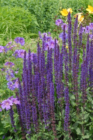From Beate Zillmer of Zillmer Pflanzen in Uchte, Germany. Imagine 'East Friesland' with violet blue flowers and glowing purple stems. Incomparable! Its tidy upright habit makes an excellent companion for Geranium, yellow Baptisia, and purple Heuchera.