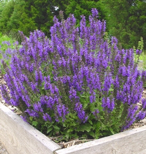 A diminutive 'May Night' cousin, covered in violet blue flowers in early summer. A good bloomer with compact and very short habit. Very easy to grow. A Haussermann Nursery Selection.
