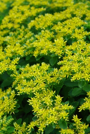A favorite among the groundcover sedums, this one is covered in canary yellow star-shaped flowers in late spring. Tough and easy to grow, it survives in just about any sunny location and spreads slowly to form a lustrous green groundcover.