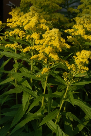 Convincing gardeners to grow goldenrods is a bit like trying to sell Toyotas in Detroit, but I will continue anyway. They are certainly ubiquitous in the fall landscape and are still wrongly accused of causing hayfever. Therefore, it bears repeating that goldenrods, like aster, Joe-Pye, ironweeds, and all the Composites, are insect-pollinated, so their pollen is heavy and sticky in order to facilitate transfer by our six-legged friends. It is the wind-pollinated plants like grasses, ragweed and many trees (I am allergic to maples for example) that produce the great quantities of light, airborne pollen that get into our noses and throats and cause the immune reaction known as hayfever. There are goldenrods for every situation, and if you avoid the aggressively weedy species like S. canadensis (My apologies to Canada) and S. graminifolia, they are agreeable garden subjects at home in the border, meadow, rock, or shade garden. Once I started to learn the different species, I became more and more aware of their subtle differences and convinced of their important role in native ecosystems as soil stabilizers and sources of food and shelter for wildlife. They are beautiful in leaf and flower, too, and no wildflower garden is complete without a few of our hundred or so species scattered around. - William Cullina, The New England Wild Flower Society Guide to Growing and Propagating Wildflowers, p. 197